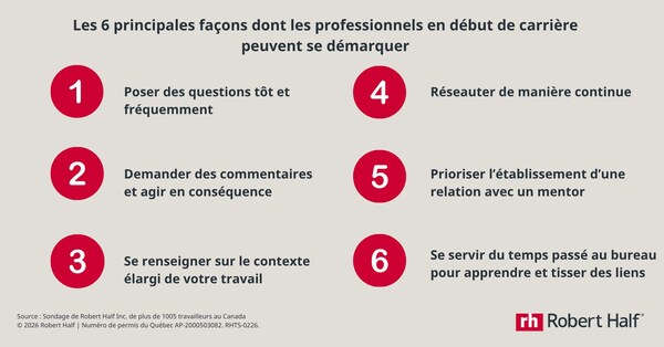 TORONTO, le 16 avril 2026 /CNW/ - Alors que les diplômés de 2026 se préparent à entrer sur le marché du travail, une nouvelle étude menée par Robert Half, cabinet-conseil international en affaires et en solutions de gestion des talents, révèle ce que les professionnels d'aujourd'hui considèrent comme le plus important pour réussir en début de carrière. Selon un sondage mené auprès de 1 005 travailleurs expérimentés, 40 % d'entre eux affirment que les candidats devraient être prêts à démontrer leur connaissance des outils d'IA lorsqu'ils soumettent leur candidature pour un poste. En même temps, 36 % des répondants émettent une mise en garde contre l'utilisation de l'IA pour embellir les compétences ou l'expérience.